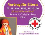 Am 18. November laden wir um 19:30 Uhr zum Vortrag des DRK im Foyer der Fachschule ein: Erste Hilfe am Kind. Mehr ...