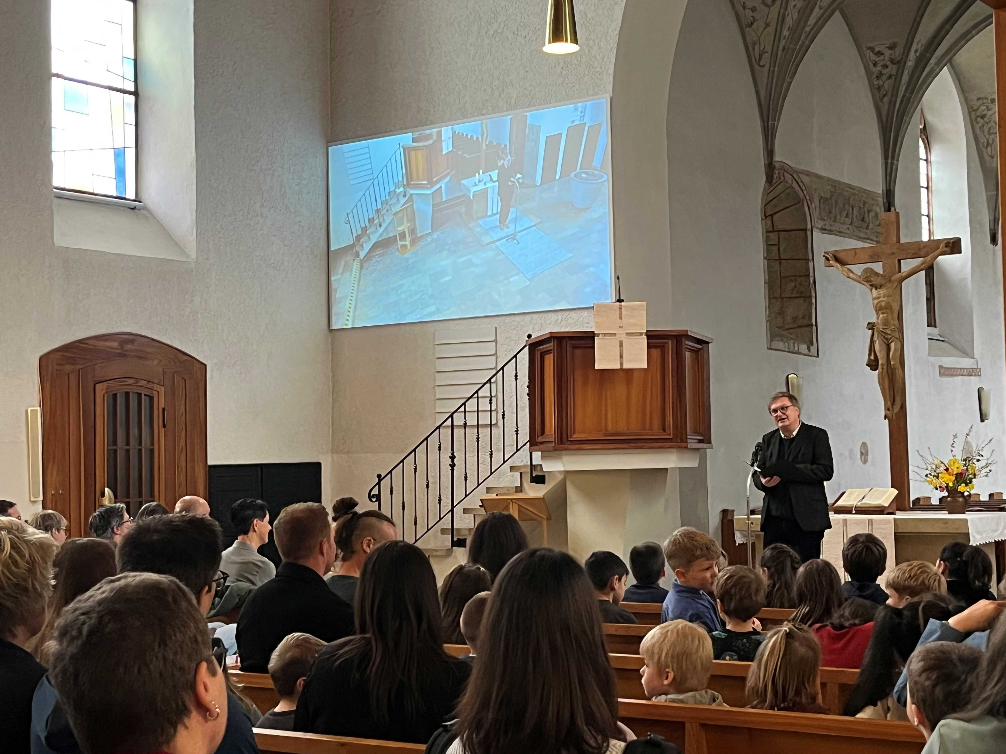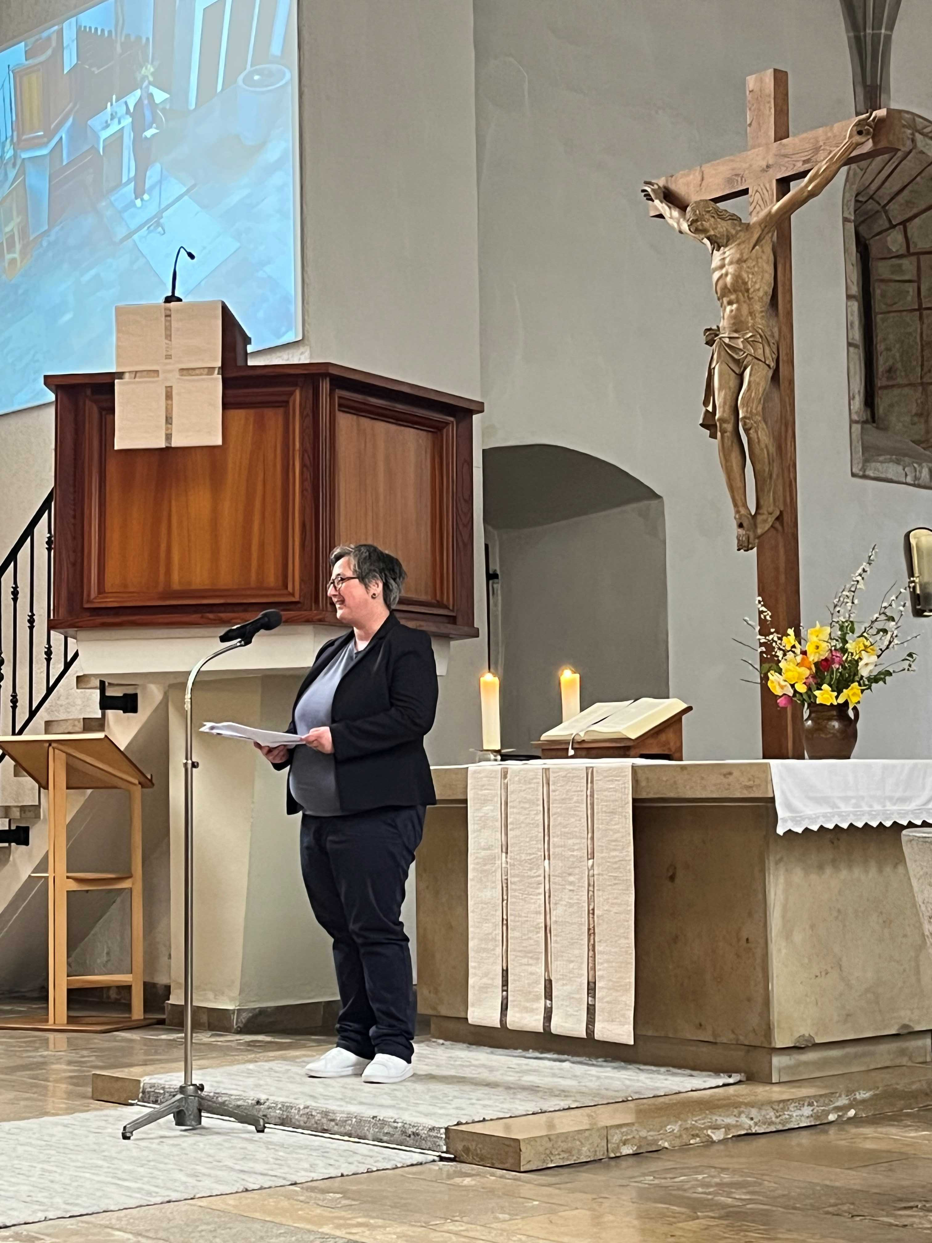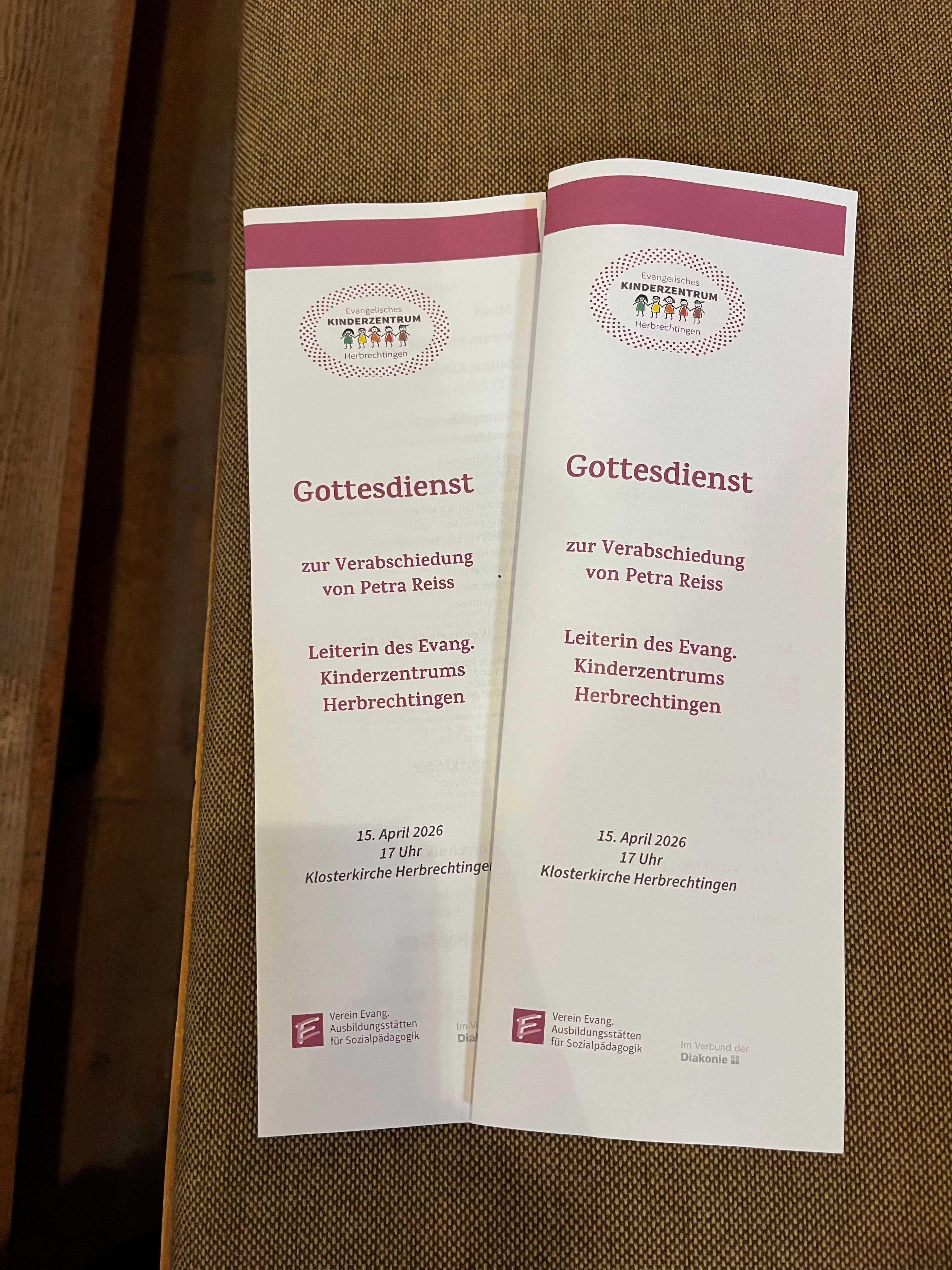 Die Reihen in der Klosterkirche Herbrechtingen waren anlässlich des Gottesdienstes zur Verabschiedung von Petra Reiss als Leiterin des Evang. Kinderzentrums gut gefüllt. Allein die Anzahl der Kinder und ihrer Familien machte deutlich, wie groß die „Zweit-Familie“ der engagierten Leiterin war. Hinzu kamen die Angehörigen der Evang. Fachschule sowie des Trägervereins. In ihren Grußworten hoben Diakonin Steffi Freisem, Vorstand des Trägervereins, und Bürgermeister Daniel Vogt die hohe Qualität der pädagogischen Arbeit des Evang. Kinderzentrums hervor.