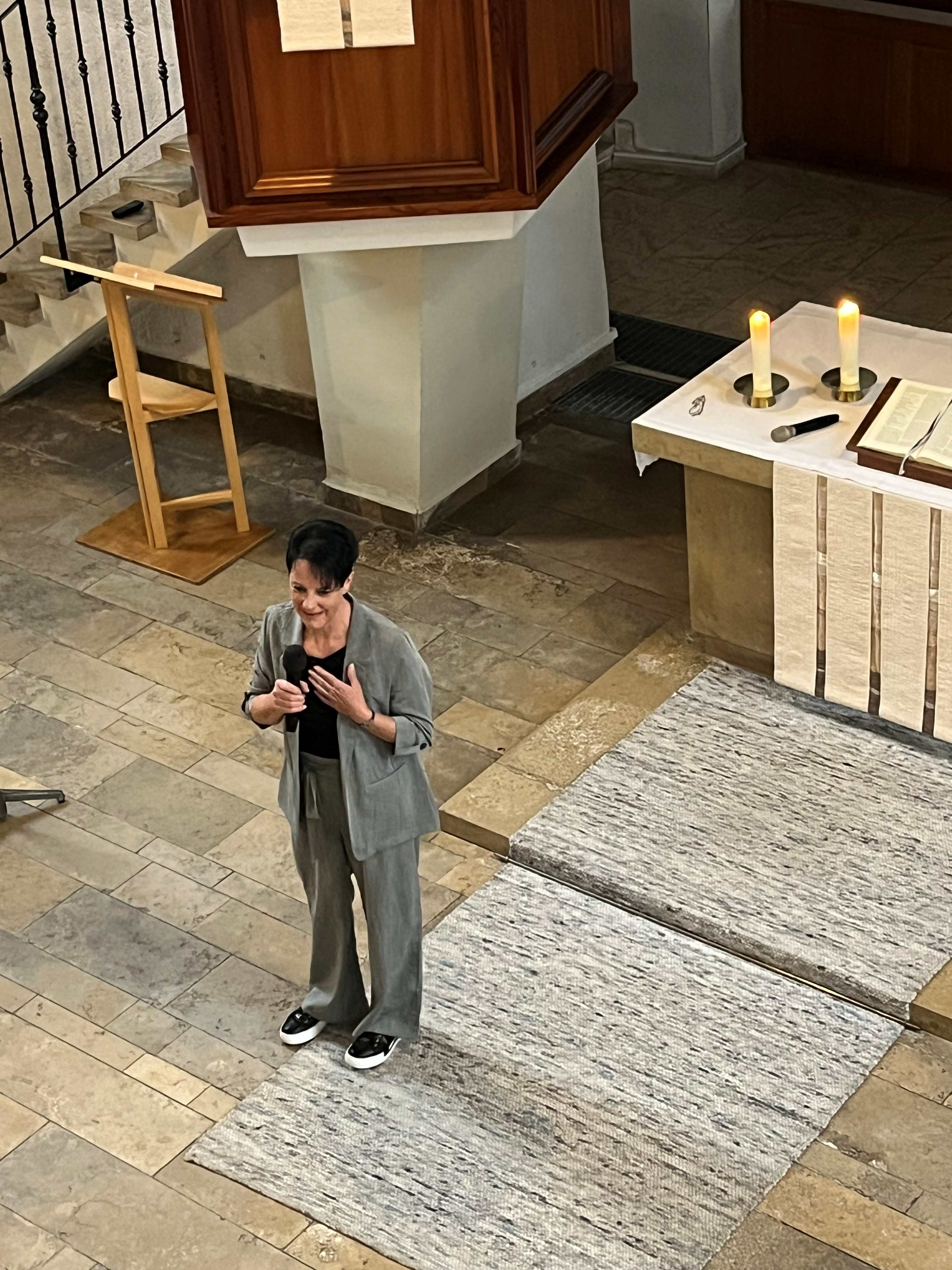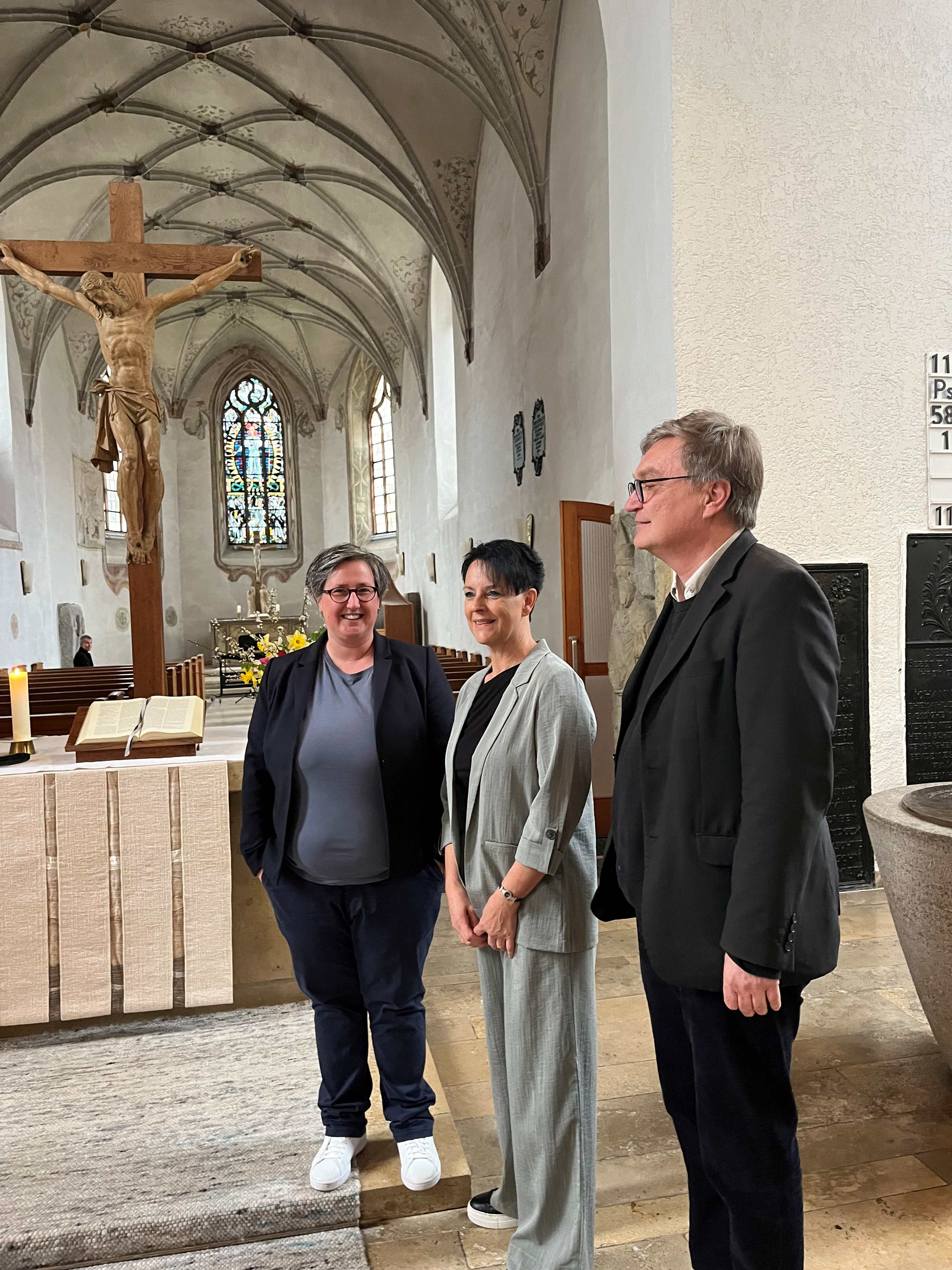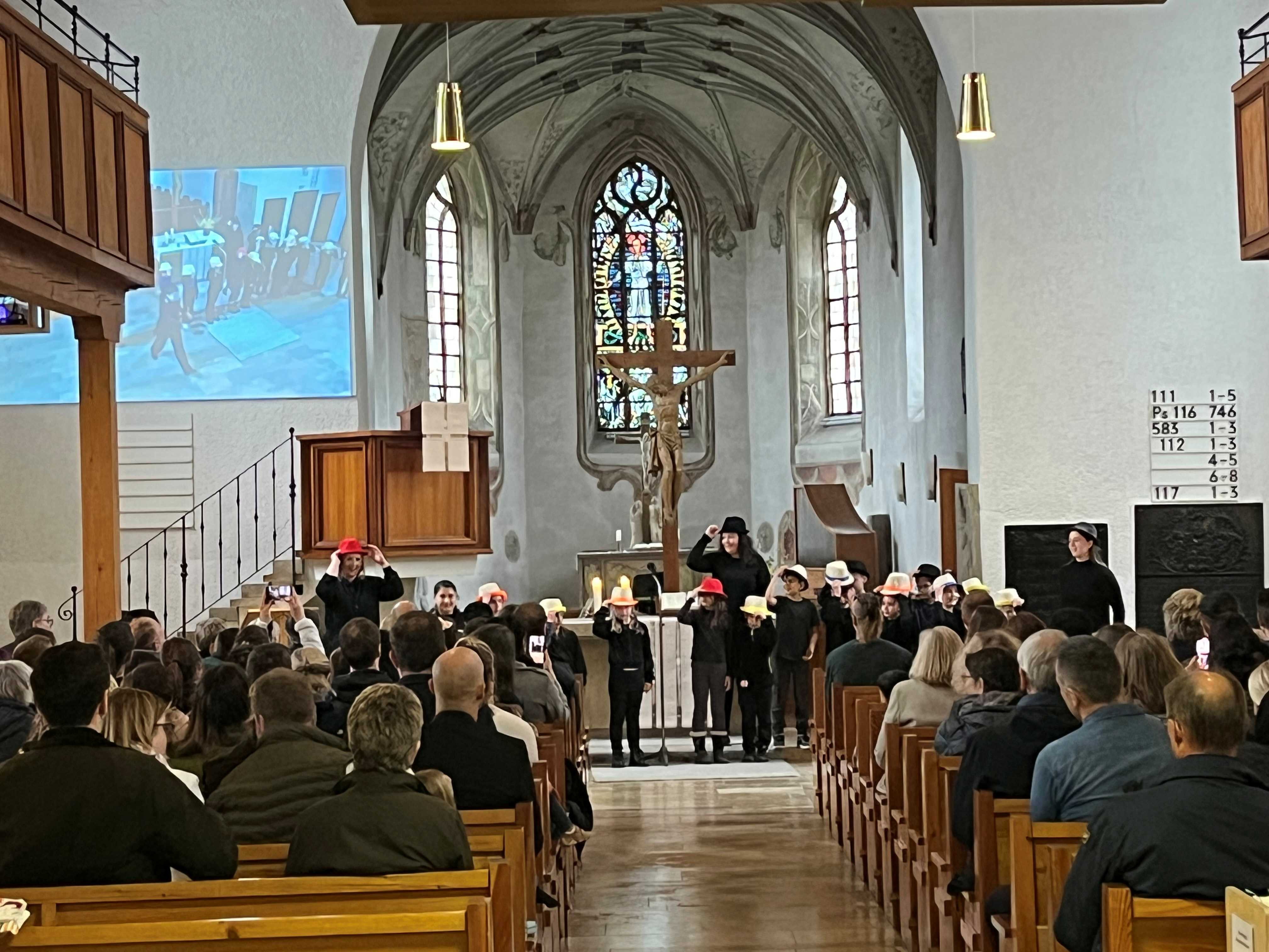 Die Reihen in der Klosterkirche Herbrechtingen waren anlässlich des Gottesdienstes zur Verabschiedung von Petra Reiss als Leiterin des Evang. Kinderzentrums gut gefüllt. Allein die Anzahl der Kinder und ihrer Familien machte deutlich, wie groß die „Zweit-Familie“ der engagierten Leiterin war. Hinzu kamen die Angehörigen der Evang. Fachschule sowie des Trägervereins. In ihren Grußworten hoben Diakonin Steffi Freisem, Vorstand des Trägervereins, und Bürgermeister Daniel Vogt die hohe Qualität der pädagogischen Arbeit des Evang. Kinderzentrums hervor.