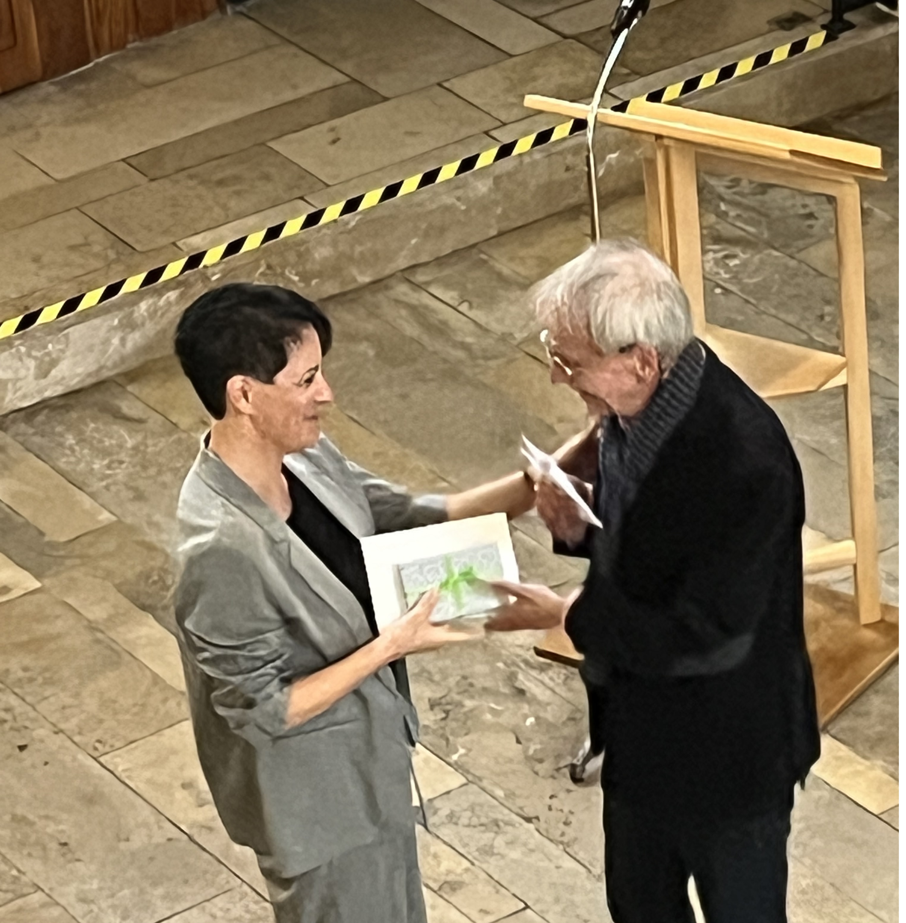 Zum 25-jährigen Dienstjubiläum erhielt Petra Reiss im September 2022 das Kronenkreuz der Diakonie in Gold. „Zur Ehre Gottes haben Sie sich in den Dienst am Menschen nehmen lassen“, ist auf der Ehrenurkunde des Diakonischen Werks eingedruckt, die Diakonin Steffi Koch, Geschäftsführerin des Trägervereins, gemeinsam mit Schulleiter Johannes Schick überreicht hat. In ihrer Rede betonte Koch: „Sie begegnen den Herausforderungen unserer Gesellschaft jeden Tag ganz unmittelbar und setzen ihr pädagogisches Können und ihre langjährigen Erfahrungen erfolgreich dafür ein, um trotz Pandemie und Fachkräftemangel den Kindern einen behüteten Alltag zu bieten, sie vielfältig zu fördern und in ihrer Entdeckerfreude zu begleiten. Als Trägerverein danken wir Ihnen sehr herzlich für Ihre vorbildliche Leitungstätigkeit und den wertschätzenden Umgang mit Mitarbeitenden, Kindern, Eltern und Kooperationspartnern. Ihre Arbeit ist ein wesentlicher Teil diakonischen Handelns und die Umsetzung des diakonischen Auftrags.“