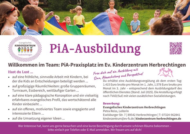Wir suchen ab April 2026 eine Leitung für das Evang. Kinderzentrum Herbrechtingen