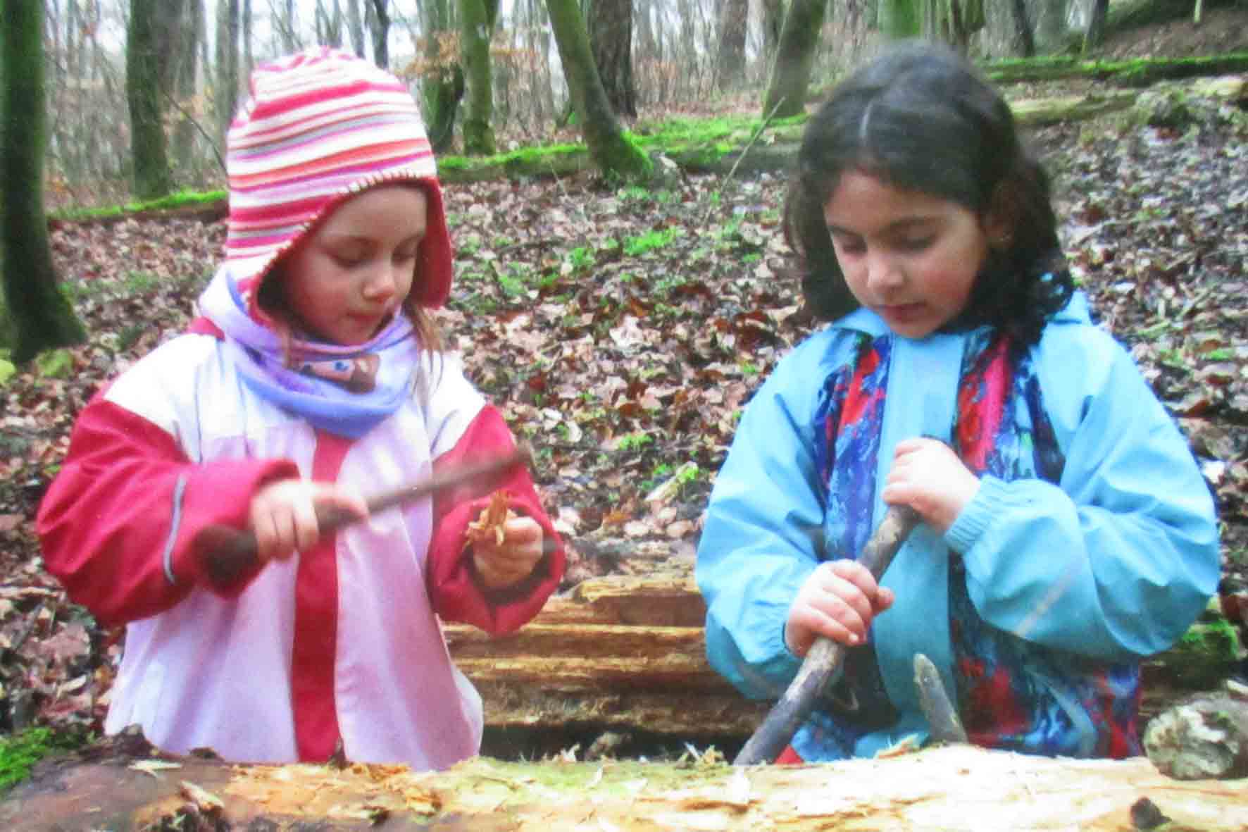 Im Zentrum steht das Urspiel der Kinder mit den Gaben der Natur. Aber auch Spiele, Geschichten, Rollenspiele, Wahrnehmungsübungen, Grünholzschnitzen oder das Erfahren der Elemente stehen auf dem Plan. Der bewusste Umgang mit der Vorbildfunktion als Erwachsener spielt hierbei eine große Rolle.